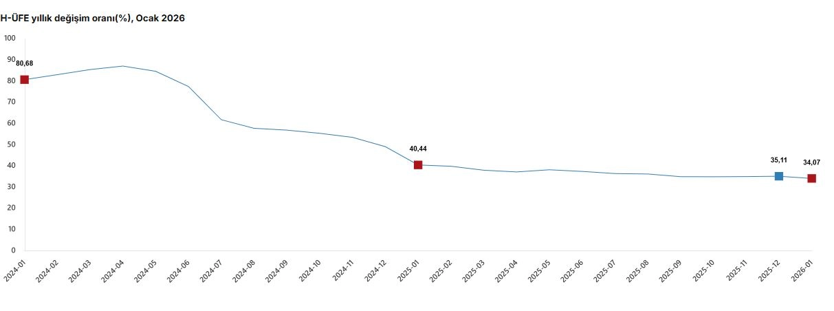 TÜİK, Ocak 2026 dönemine ilişkin, hizmet üretici fiyat endeksi verilerini açıkladı. Buna göre; hizmet üretici fiyatları bir önceki aya göre yüzde 7,74 artış, bir önceki yılın aralık ayına göre yüzde 7,74 artış, bir önceki yılın aynı ayına göre yüzde 34,07 artış ve 12 aylık ortalamalara göre yüzde 36,27 artış gösterdi.