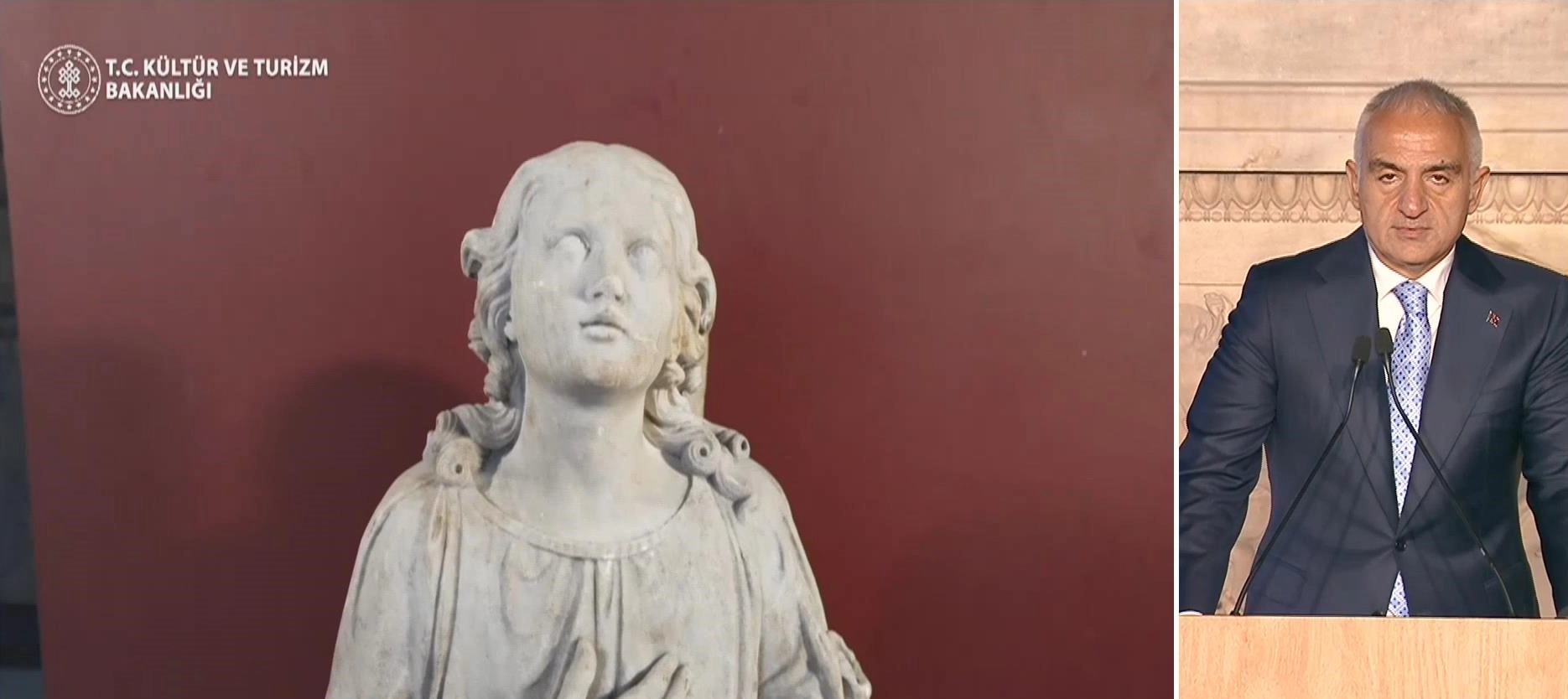 Bakan Ersoy konuşmasında, "İstanbul Fener Rum Patrikliği’ne çok değerli bir kültür varlığını, bir melek figürünü iade etmek üzere buradayız. Bu güzel birlikteliği değerlendirip bu toprakların mirasına sahip çıkma noktasında bakanlık olarak ne yaptığımızı anlatmak merak edilen hususlara çıklık getirmek istedik. Kültür varlıkları deyince akla gelen ilk bilim dalı arkeolojidir ve maalesef bu dal 18. ve 19. yüzyıllarda özellikle Avrupa devletlerinin arkeolojiye ilişkin politik ve stratejik yaklaşımlarının etkisi diğer ülkeleri ciddi anlamda mağdur etmiş ve pek çok eser izinsizce ve bir talan yaklaşımıyla yurtlarından koparılmıştır. Osmanlı Devleti de o dönem kendi sınırları içinde kalan eserleri korumanın tek yolunun bir müze kurmak olduğunu görmüş; ekonomik bakımdan zor bir süreçten geçiyor olmasına rağmen gerekli yatırımı yaparak 1869 yılında Müze-i Humayun'u bugünkü adıyla İstanbul Arkeoloji Müzelerini kurmuştur. Bizler 160 yıla uzaklaşan müzecilik ve arkeoloji geçmişimizle haklı bir guru duyarken aynı zamanda kendimizi sürekli geliştirme sorumluluğunu da taşıyoruz. Göreve geldiğimiz andan itibaren müzecilik alanında gerçekleştirdiğimiz çalışmalar yalnızca mevcut mirasımızı korumakla kalmamış aynı zamanda bu mirası daha geniş kitlelerle buluşturmayı deneyimlenebilir kılmayı ve sürdürülebilir bir kültürel etkileşim alanı oluşturmayı hedeflemiştir. Bugün geldiğimiz noktada bakanlığımıza bağlı 219 müze ve 147 ören yerimizi 2025 yılı itibariyle 33 milyonu aşkın ziyaretçiyi ağırlamıştır. Bu güçlü yükseliş kültürel mirasımıza duyulan ilginin ve sahiplenmenin her geçen gün daha da arttığını açıkça ortaya koymaktadır." dedi.