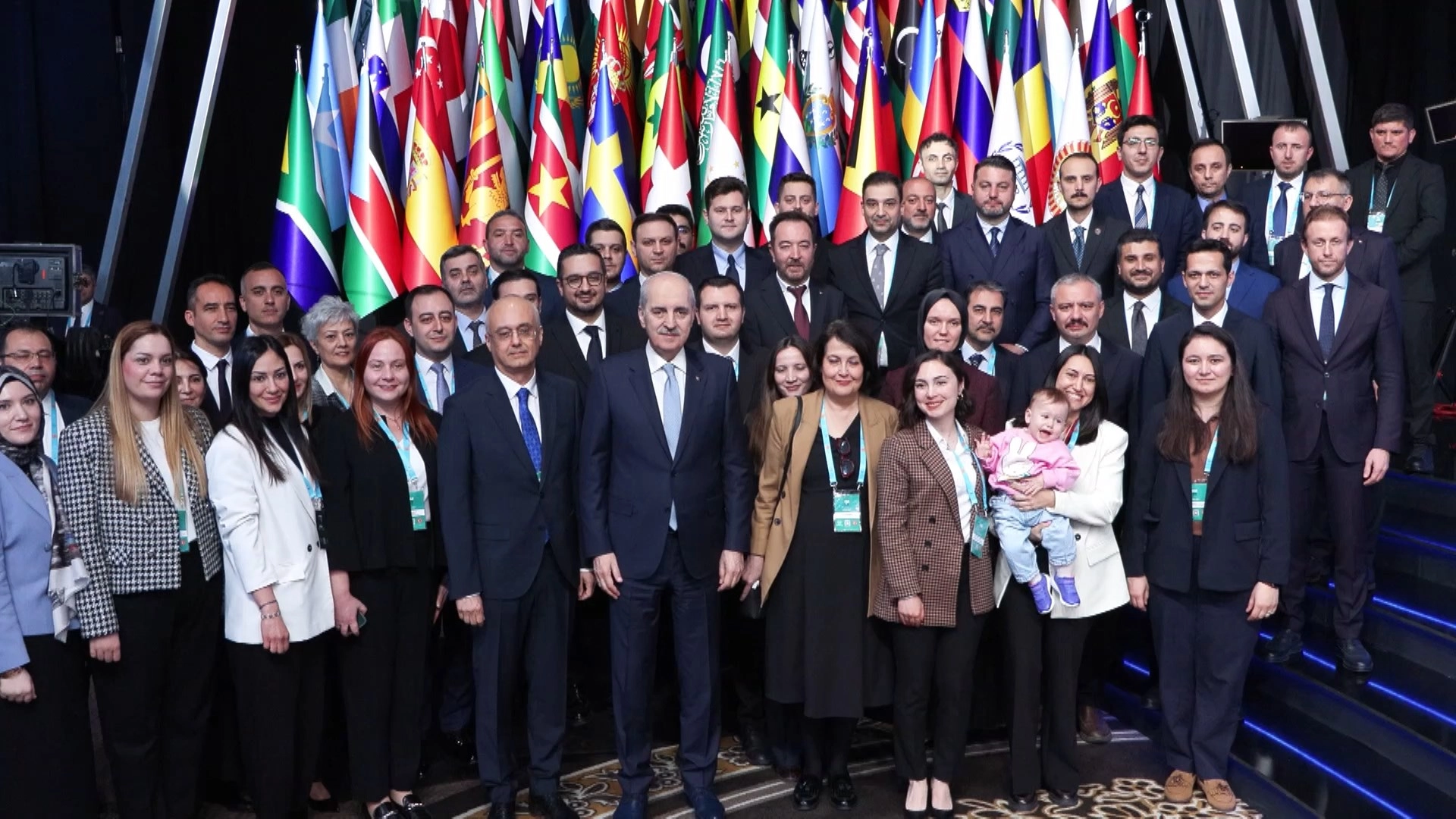 TBMM'nin ev sahipliğinde İstanbul'da düzenlenen Parlamentolar Arası Birlik (PAB) 152'nci Genel Kurulu'na Türkiye Büyük Millet Meclisi (TBMM) Başkanı Numan Kurtulmuş katıldı. Kurtulmuş, Parlamentolar Arası Birlik (PAB) 152'nci Genel Kurulu kapsamında katılımcılarla bir araya gelip aile fotoğrafı çektirdi. (DHA)