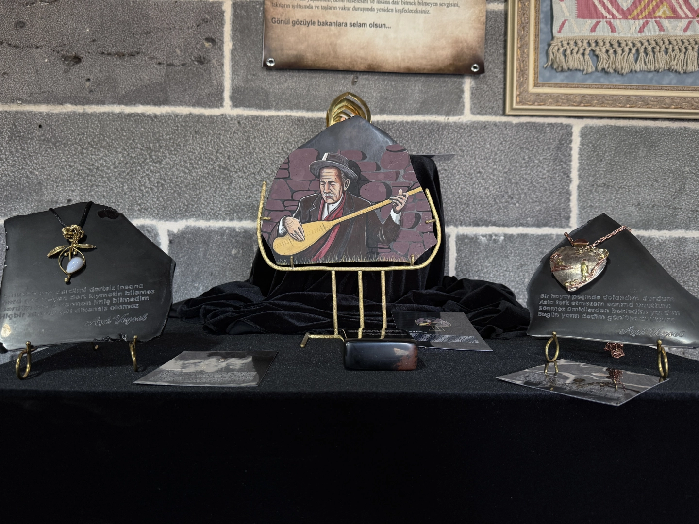 Diyarbakır Olgunlaşma Enstitüsü tarafından, halk ozanı Aşık Veysel’in felsefesini ve yaşam hikayesini ele alan ‘Karanlıktaki Aydınlık’ adlı sergi, Diyarbakır Tanıtma Kültür ve Yardımlaşma Vakfı’nda (DİTAV) ziyarete açıldı. 2023-2024 eğitim-öğretim yılı boyunca yürütülen çalışma kapsamında, Aşık Veysel’in dizeleri ve yaşamına dair anlatılar obsidyen taşları üzerine işlendi; bazı eserlerde ozanın evi, ailesiyle ilişkisi ve fotoğraflarından hazırlanan film rulosu/şiir makarası detayları da yer aldı. Aşık Veysel’in dizeleri, hayatından kesitler ve yaşadığı ev ile çevresi, obsidyen taşları ve kuyumculukla birleştirilip 27 parça eser haline getirildi.