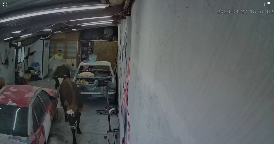 Nisa MİĞAL/ANKARA, (DHA)- ANKARA'da ahırdan kaçan büyükbaşlar, oto tamirciye girdi. O anlar güvenlik kamerası görüntülerine yansıdı.