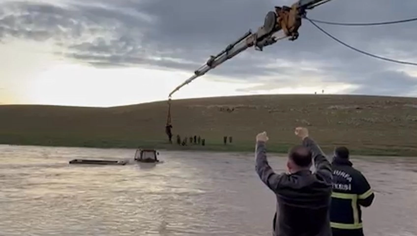 Ceylanpınar ilçesinde, TİGEM arazisi içerisindeki Ofa Göçer yerleşkesinde Mazlum A. traktörüyle İbrahimağa Deresi’nden geçmek isterken mahsur kaldı. Durumu fark eden vatandaşların ihbarı üzerine bölgeye jandarma, itfaiye ve sağlık ekipleri sevk edildi. Akıntının şiddetli olması nedeniyle kurtarma çalışmalarına vinç ve iş makineleri de dahil edildi. Vincin ucundaki kancaya bağlanan halata tutunan Mazlum A., suya kapılmamak için büyük çaba gösterdi. Yapılan çalışma sonucu sürücü, kurtarılıp güvenli alana alındı. Mazlum A.’nın sağlık durumunun iyi olduğu öğrenildi. Derede mahsur kalan traktörün ise debinin düşmesinin ardından çıkarılacağı bildirildi.