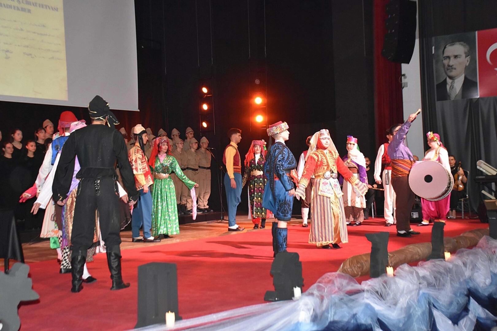 Programda Narlıdere Arkas Mesleki Teknik Anadolu Lisesi öğretmen ve öğrencilerinin hazırladığı 'Çanakkale Geçilmez' isimli oratoryo gösterisi yapıldı. (DHA)