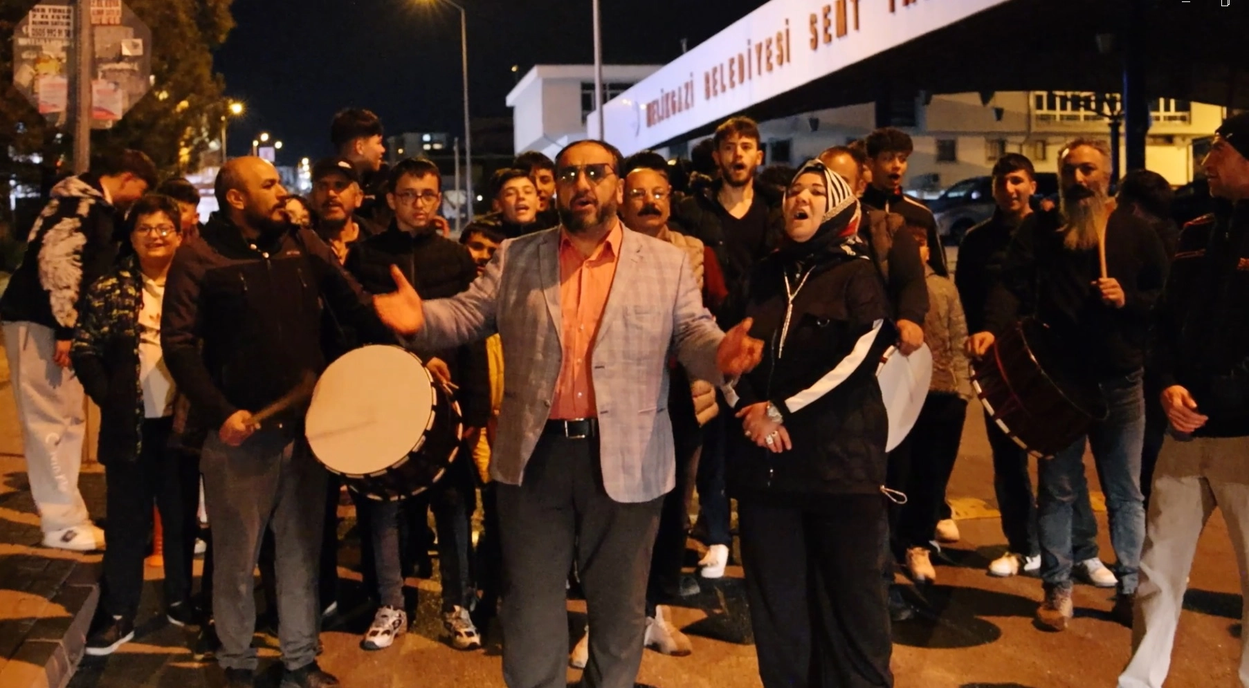 Furkan KAVUKLU/ KAYSERİ, (DHA)- KAYSERİ’de muhtar Hatun Kekeç, ‘Kadir Gecesi’nde gençler ve ramazan davulcularından oluşan yaklaşık 80 kişiyle, mahalleyi dolaşıp son günlerde dillerden düşmeyen 'Kabe’de Hacılar Hu Der Allah' ilahisiyle klip çekti.