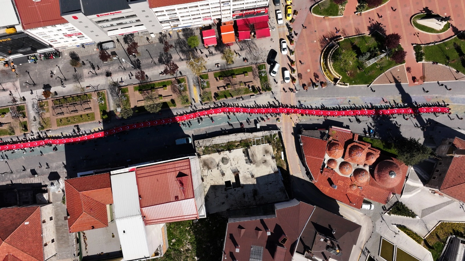 Öğrenci ve velileri ile öğretmenler 200 metrelik Türk bayrağıyla yürüdü / Ek fotoğraflar