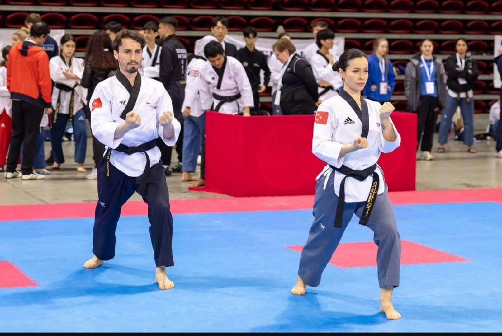 Nevra UÇKAÇ/İZMİR, (DHA)- İZMİR’de Beden Eğitimi Öğretmeni Rabia Kim Karışık (38) ve eşi Fazlı Karışık (36), Avrupa Tekvando Federasyonu'nun düzenlediği Bulgaristan Açık G2 Uluslararası Tekvando Şampiyonası'nda hem bireysel hem de çiftler kategorisinde altın madalya kazandı. Rabia Kim Karışık, en büyük hedefinin ise eylül ayında düzenlenecek olan dünya şampiyonası olduğunu belirtip, "İnşallah babamın memleketi olan Güney Kore'de ülkemi en iyi şekilde temsil etmek kısmet olur" dedi.
