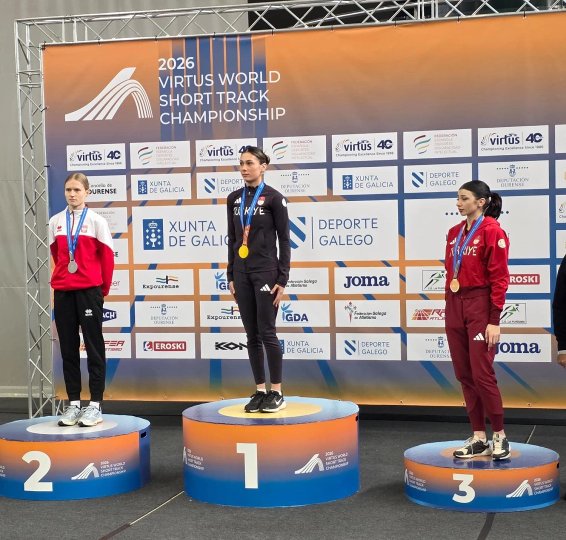 Ergin KARATAŞ / İZMİR, (DHA)- İZMİR'de yetişen milli para atlet Aysel Önder, 8 Mart Dünya Kadınlar Günü'nde Virtus Dünya Salon Atletizm Şampiyonası'nda 2 dünya şampiyonluğu birden kazanarak Türk kadınının adını altın harflerle zirveye yazdırdı. Kariyerinde genç yaşında uluslararası alanda ilkleri başaran mental engelli sporcu, Para Atletizm Dünya Salon Şampiyonası'nda T20 kategorisinde 24.87 derecesiyle Avrupa rekoru kırarak dünya şampiyonu oldu. Aysel, Ourense kentinde düzenlenen şampiyonada Türkiye Kadın Para Atletizm Milli Takımı'yla da dünya şampiyonluğu yaşadı.