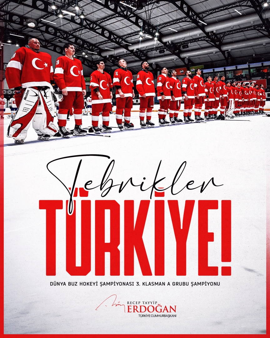 İSTANBUL, (DHA) – CUMHURBAŞKANI Recep Tayyip Erdoğan, 2026 IIHF Buz Hokeyi Dünya Şampiyonası Division III Group A’da son maçta Meksika’yı mağlup ederek altın madalya kazanan Buz Hokeyi A Milli Erkek Takımı’nı kutladı.